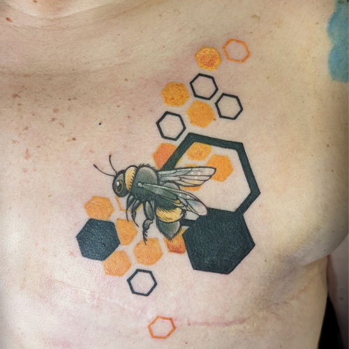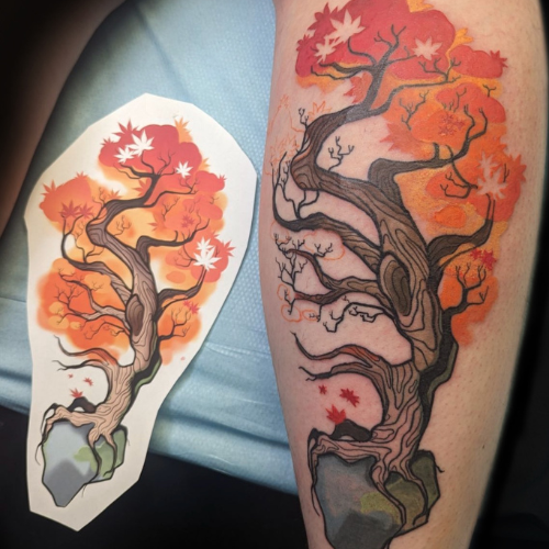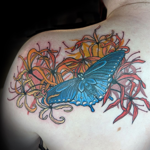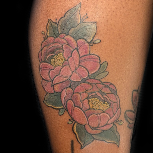 Katie is a Maryland based tattoo artist, originally from Western New York, who loves working with bold lines and colors. Some of Katie’s favorite subjects to tattoo include bright florals, pop culture, silly pin-ups, and “weird little guys.” Do you have a quirky idea? Katie wants to tattoo it for you!